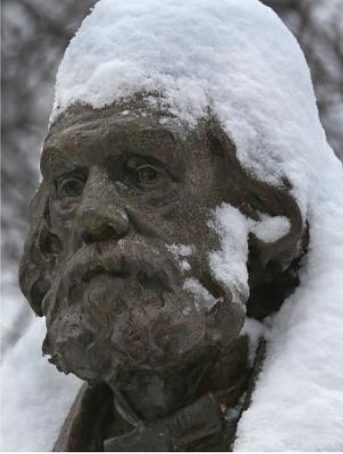 Edward Everett Hale in the Boston Public Garden. I’m pretty sure that expression is because he can’t leave a geographical location that dumps a load of snow the day before spring (ya know, on account of he’s a sculpture).