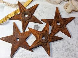 I have an old tin star I got at the Brimfield flea market lots of years ago, and it’s been living on a shelf in my living room ever since. I also scored some rusty old stars there, which I love for their dirty elegance.