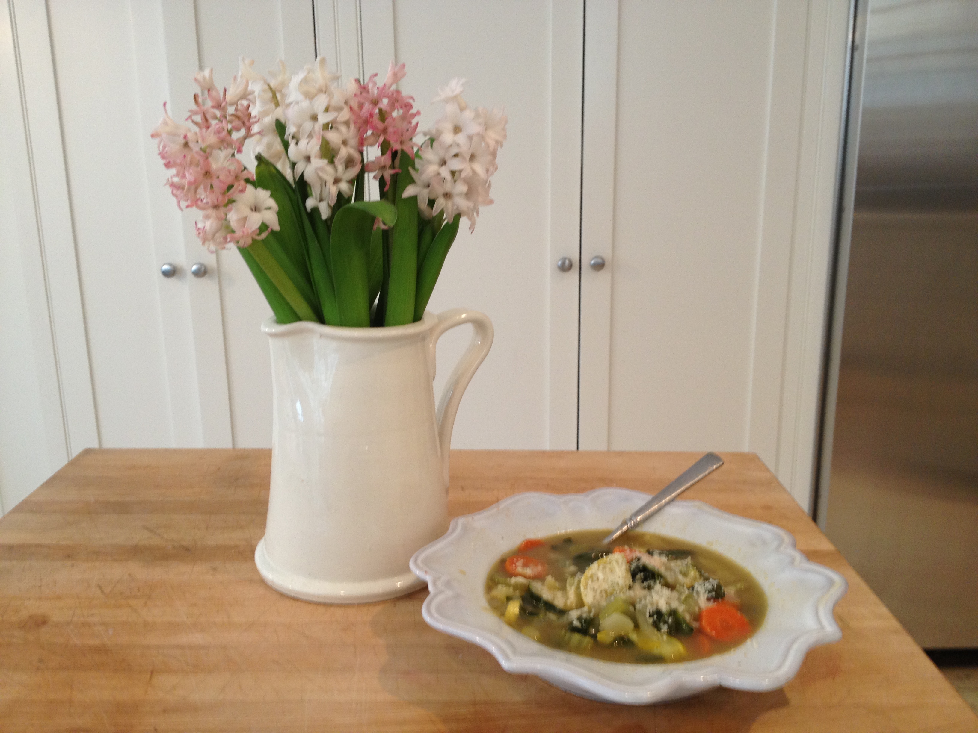 Look, it’s 6 degrees here. I am freezing (my old Victorian does not have a great heating system), so for today I am looking at things that make me warm. Here’s one of them. My good old chicken soup. I will be grateful when it goes up to 8 a little later today.