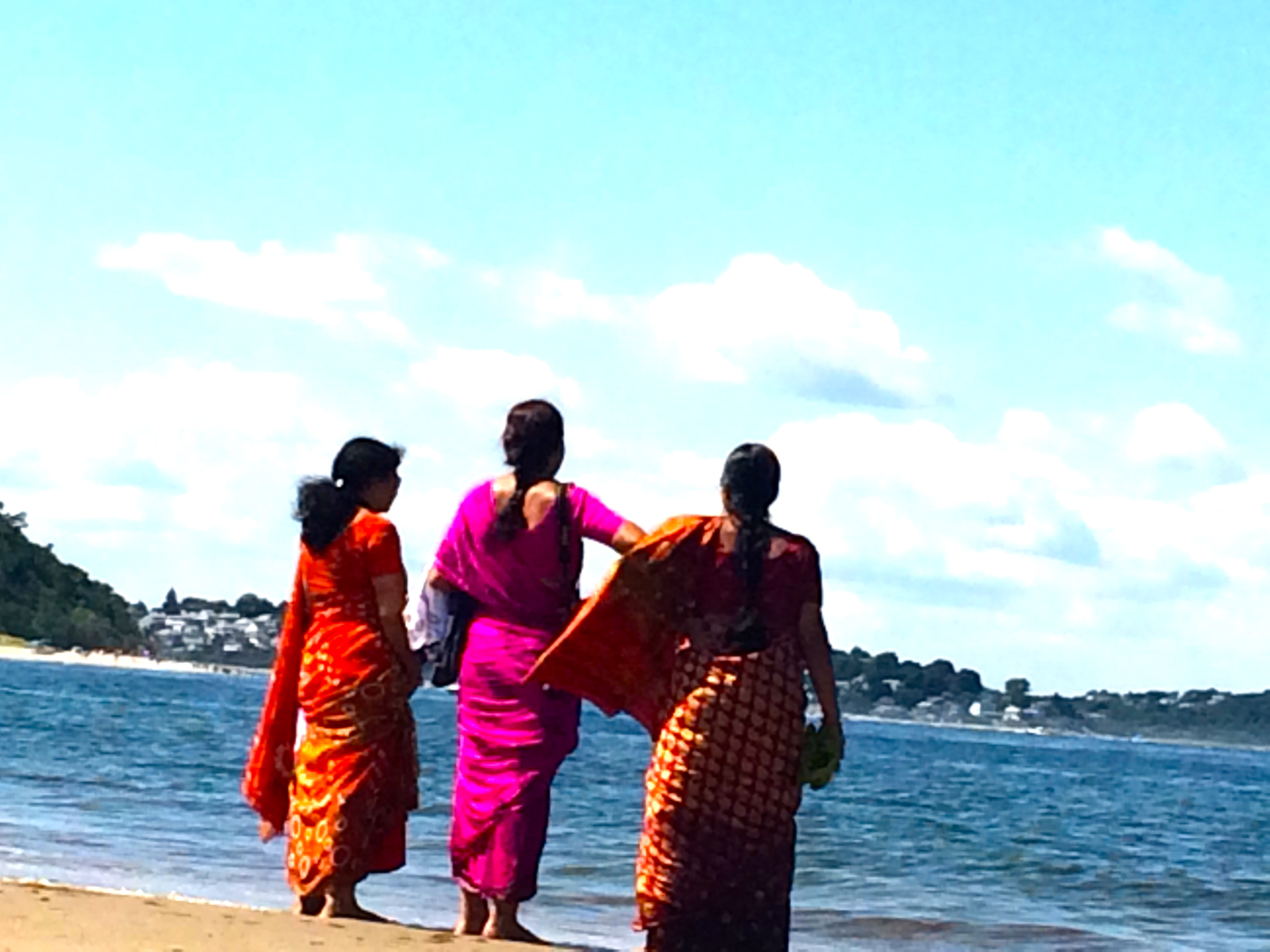 Anyway, I took myself to Crane Beach yesterday for a leisurely day of walking and reading and just plain sitting and looking at the water, trying to grab the last bits of sunshine before what the Farmer’s Almanac says, will be a brutal winter. I found myself a somewhat secluded little spot of sand close to the water so I could hear the waves, which soothe me like a mom can almost always soothe a baby by picking that little bundle up. But then a rather large Indian family descended on the water from their spot further away from the shore, and the air filled with the sound of Hindi. At first I was annoyed by their noise, but then I closed my eyes and imagined I was in India. It was sort of cool. I’m good at fooling myself. Also there were three women in beautiful sari’s, and I couldn’t take my eyes off of them. I started snapping covert pictures of them from the back, but felt too intrusive to get up and frame my shot. Finally, I was so taken with the beauty of them against the water, I got up and showed them my photo and told them how totally stunning they looked. Two of them looked at me blankly and nodded to the third, who spoke english. They all laughed, quite obviously thinking me foolish. But hey, beauty is where you find it. It was a good day.