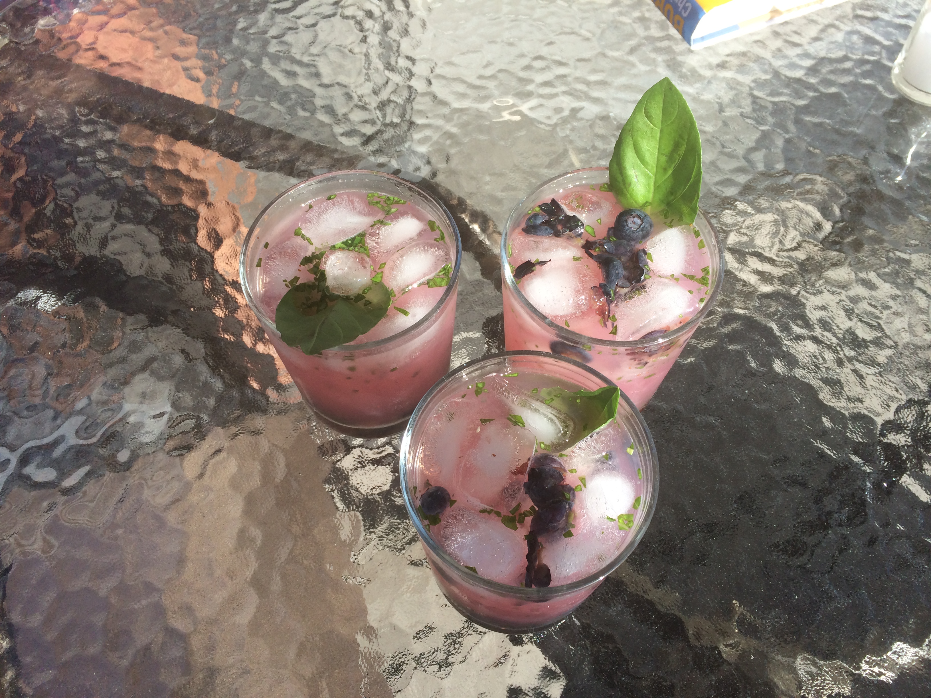 Drink of the summer. Created on the Vineyard. Crushed blueberries, lemonade, basil and vodka.