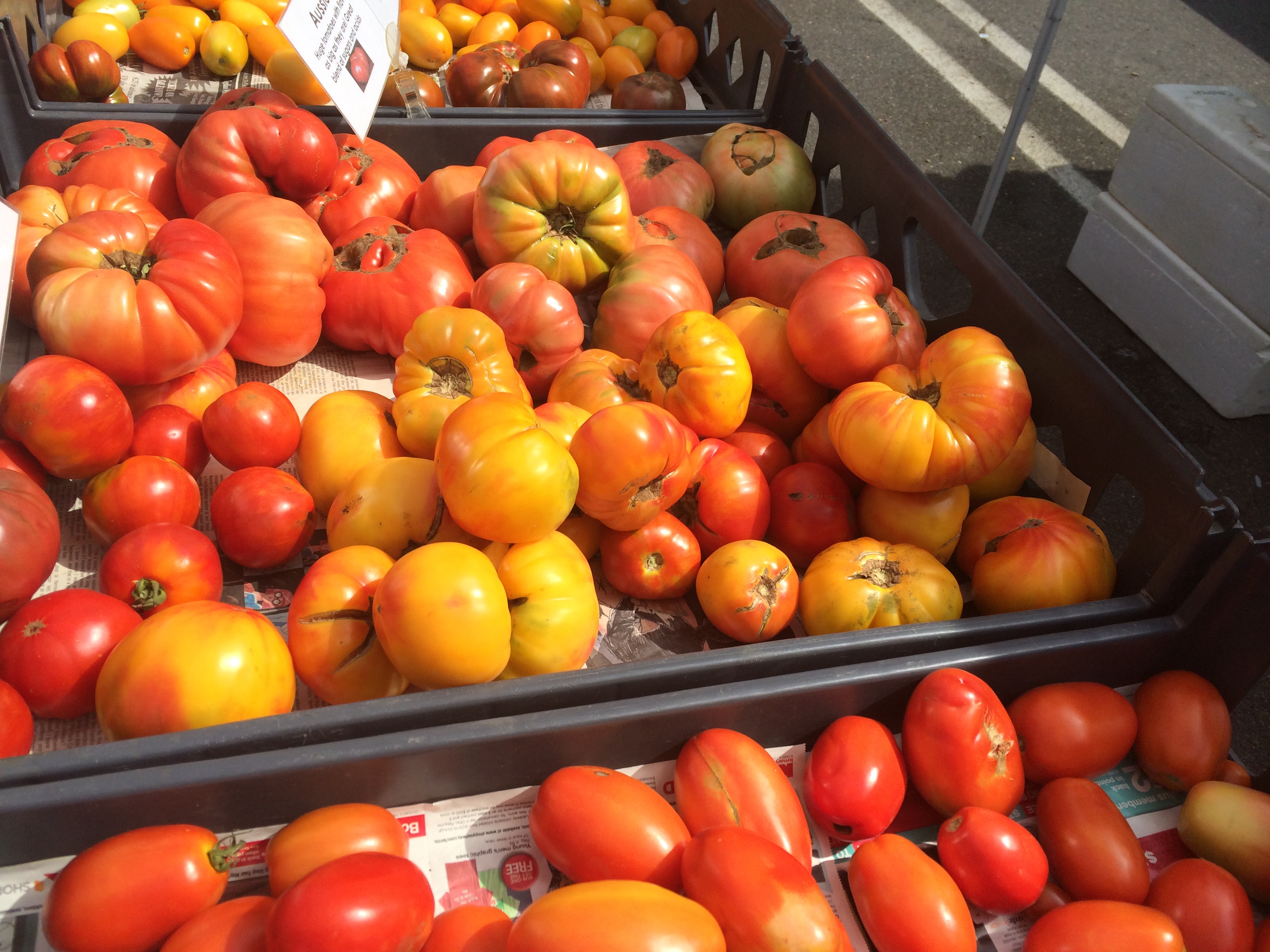 Tomatoes at the Brookline Farmer’s Market. Thursdays were the best day to eat at my house this summer.