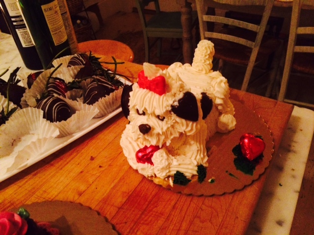 My friend brought this Riley-ish dog cake, because she thought it would make me laugh. It did.
