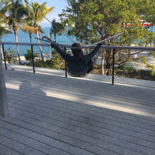 Lastly, we went to the contemporary Perez Art Museum, which is a must if you’re anywhere near Miami. The hanging gardens are stunning. And the metal swings were not only comfortable, but really relaxing. I was in love before we ever went inside. The exhibit space is well laid out, and while we didn’t have quite enough time to see everything in the depth we would have liked to, we both particularly enjoyed Antoni Tapies work. I could have stared at the Cementerio – jardín vertical (Cemetery – Vertical Garden),1992 by Maria Fernanda Cardosa ALL DAY. We ate at Verde, the outdoor museum cafe. The food was as good as the view.