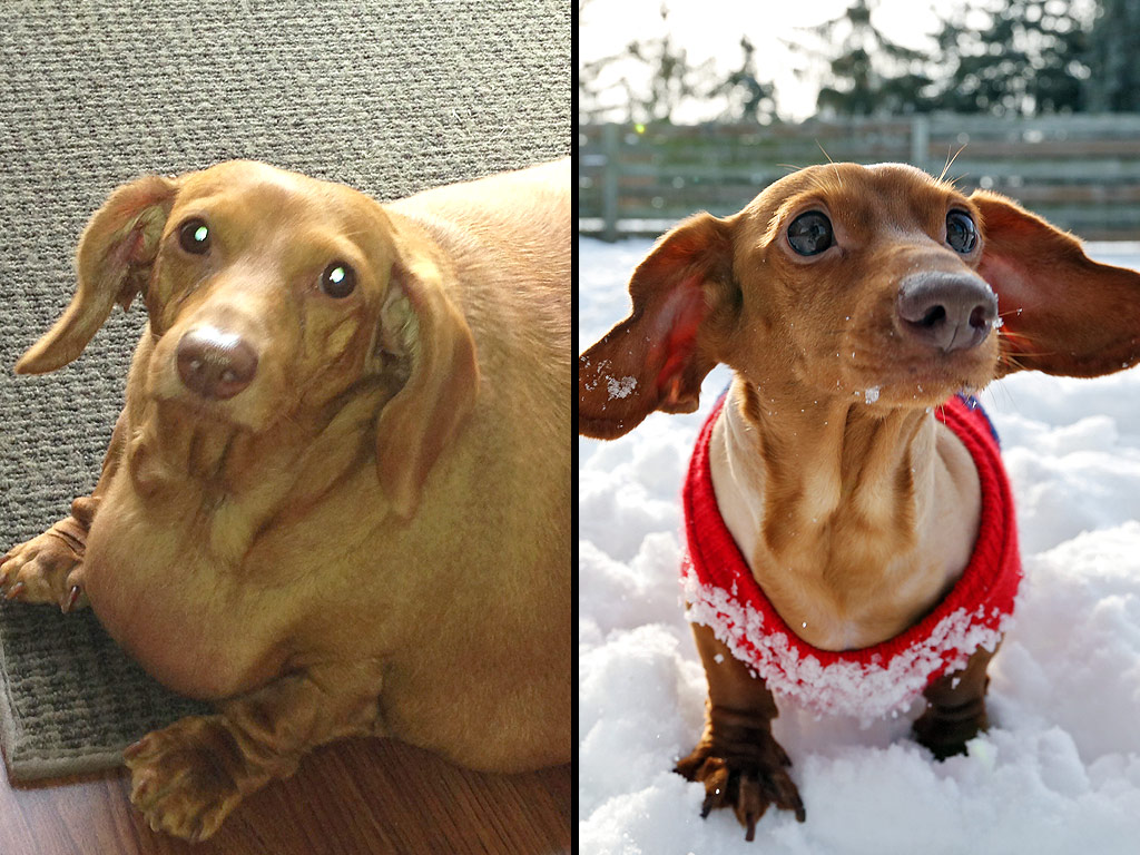 And I have a hard time losing 5 pounds! Meet Dennis, the dieted down dachshund. Brook Burton, you’re the bomb.