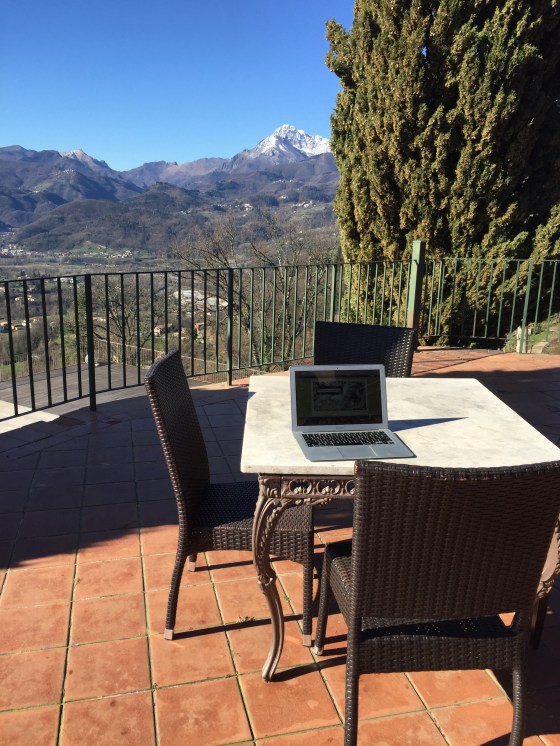 The next day we tripped around a sunny Florence, and left for the conference in the afternoon, which was way up on a mountain, and where several other unplanned moments of fun occurred, including actually getting lost in the hotel, which was the size of a small Italian village (this is an example I am known to use frequently as a joke, only, in this case, it was true), an obstacle course hike to a small scenic town with one of Peter’s colleagues that was magical, and writing outside with the snow-peaked Dolomites in view.