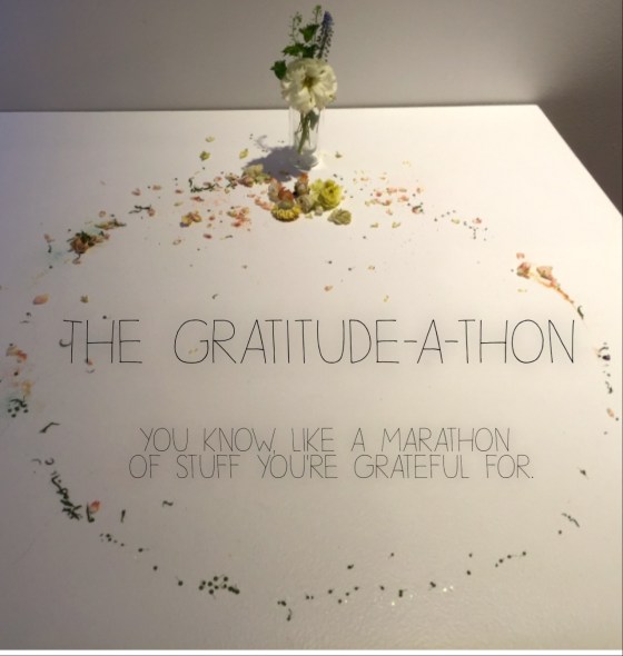 Gratitude One is where you are brought to your knees by shitty life circumstances and you have to sit yourself down (or just lie in traffic) and make a list of what you do have. Like your list might read: shelter, bed, food. It might read: shoes, dog, underwear. It could read: eyes, feet, heart. This is the kind of grateful game that asks you to focus on the basics, the basics we often forget because we’re thinking about all the stuff we don’t have.