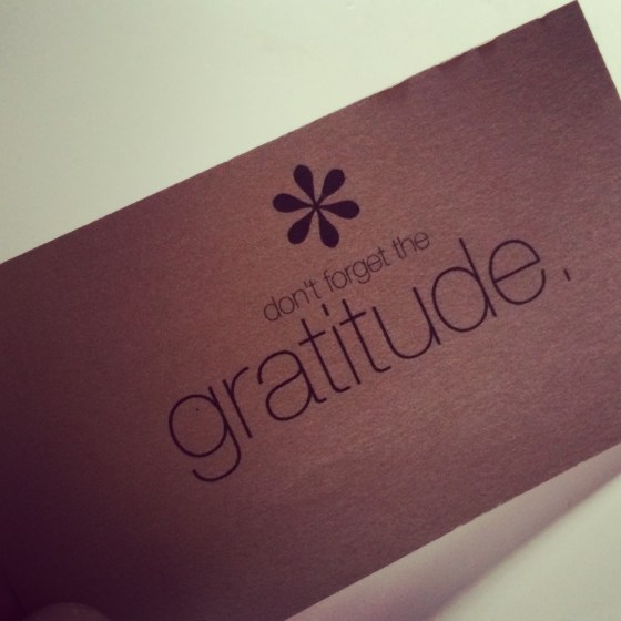 It sounds easy to do, and really it is, but it’s a practice. You have to do it, and then get up and do it again. Pretty soon, it will become like brushing your teeth. You’ll find yourself stopping on the highway to admire the sunset, or putting something fabulous in your pie hole, and moaning with grateful dee-light, or getting into your bed at night, crazy exhausted and realizing how freaking lucky you are that you have this sacred place to get some rest.