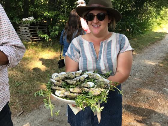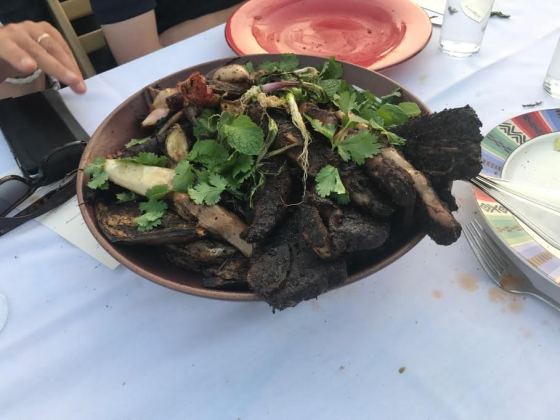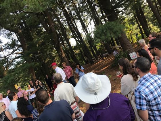 First appetizers, beer and wine in a grove of pine trees. Then a little walk around the farm to learn about its crops with John who has been farming the land for the last 35 years and had retired only the day before. And then, we were lead to a long table for all of us to sit, all 175 of us, in a field that was as promised, outstanding.