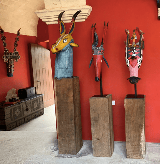 On the outside, it’s just a simple stone building, nothing-to-see here kind of architecture, (except I find even the dullest anything in Italy gorgeous) but then you feel like Alice dropping into Wonderland, opening the door into a seriously interesting and quirky art collector’s mind. Artifacts and folk art and textiles from Africa, Mexico and India, and other places the owers have visited on their extensive travels. Antiques, carved figures, paintings, sculpture, and more than 1,000 books make each of the theme rooms and common areas a visual party. No nook, no cranny has been left unadorned. There are unlimited places to read, meditate or just take in the atmosphere and chill.