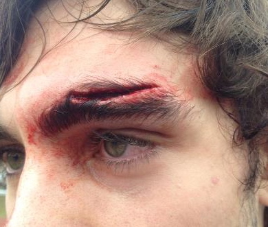 After playing two games in a tournament OUTSIDE, I might add (you know, where there is still SNOW and stuff) Ally stood on the sidelines with her coach to get her review. Peter and I stood several feet away, like statues, observing her profile for any signs of the outcome. Almost immediately, I could tell she hadn’t made it. I knew that the billboards for “Difficult Parenting Ahead” would be popping up any minute. Peter was in disbelief, as all signs had made him think her place on the team was safe. When it looked like they were wrapping up, I forced Peter to go and talk to the coach. I knew if I went over, bad things would come out of my mouth, and I might not be able to control my hands, or feet. Ally walked toward me and one of her other team mates, and told us both the news. She would play down a team for five months and be guaranteed a contract for 2014 on her current team. The coach wanted her to get more playing time, to play the whole game, instead of just 15 minutes, in an effort to improve her play. And although, I saw it as the coach’s commitment to her development as an even stronger player than she already was, it was not a scenario we’d ever considered. And for Ally, it was the first defeat she’d ever encountered. We went to the car and the tears started. There was some wailing. There was some sobbing. There was a lot of snot. Ally did not want to talk. This was hard because that’s all I want to do when something goes wrong for me, but I had to respect her process, so I sat quietly crying in the front seat. Peter drove like a zombie. Ally handed me her phone with a picture of Jake’s gash that was already circulating on Facebook. I have never felt queasy around anything medical, but I actually almost threw up. One inch, maybe less than one inch, and his eye would have been gone. GONE as in not there anymore. No question. One inch lower, and he would have been been blinded.