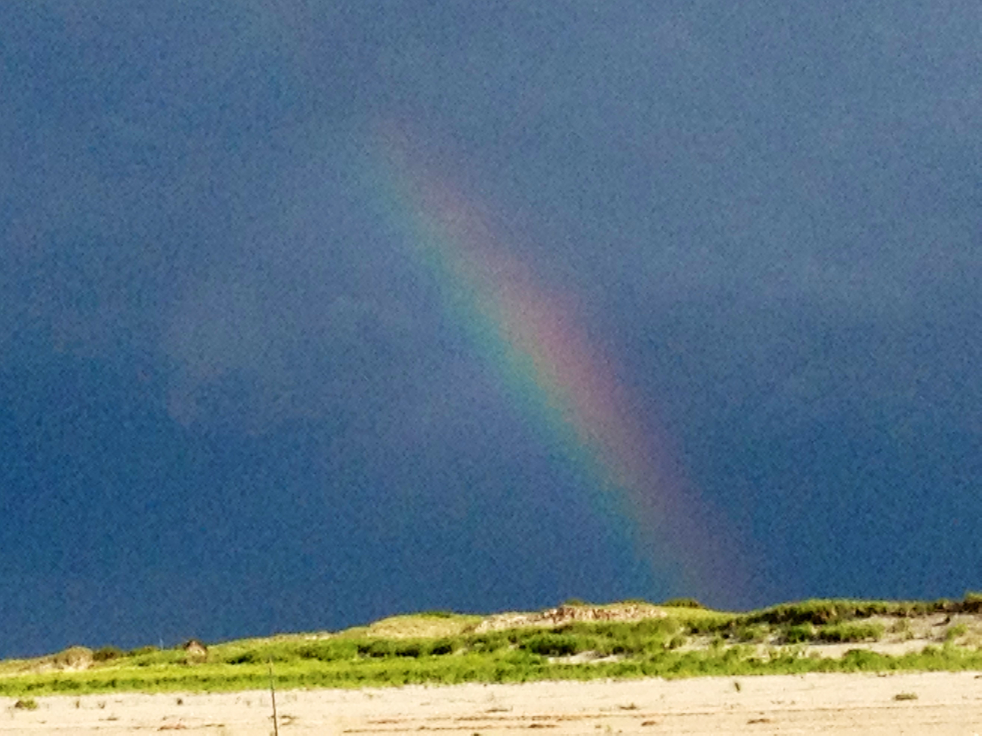 The next day, my friend Colleen and I went to Crane’s Beach, which was packed, but perfect, and I ended the day with take-out from Barcelona (because I could not get the tomato and herbed ricotta plate from the night before out of my head and had to have a repeat) and watched a really good movie, The Lifeguard with Jake. Then yesterday, Colleen and I went to Crane’s AGAIN, and stayed until it closed at 8 o’clock, which meant that we stayed right on that beach during a storm. I wish someone could have taken our picture, because we took shelter under our beach chairs and it was pretty funny. After it rained, there was the most amazing rainbow, and then the black sky became totally sun-filled again with big, gorgeous, puffy clouds of all denominations. We ended the day with dinner at Woodman’s. I came home and watched the two hour season finale of The Killing.